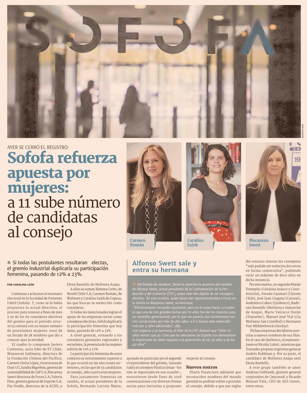 Firmas socias de Sofofa sorprenden y anuncian 11 mujeres candidatas a consejeras - (Pulso)