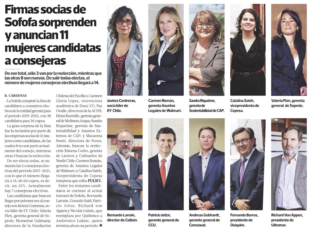 Sofofa refuerza apuesta por mujeres: a 11 sube número de candidatas al consejo - (Diario Financiero)