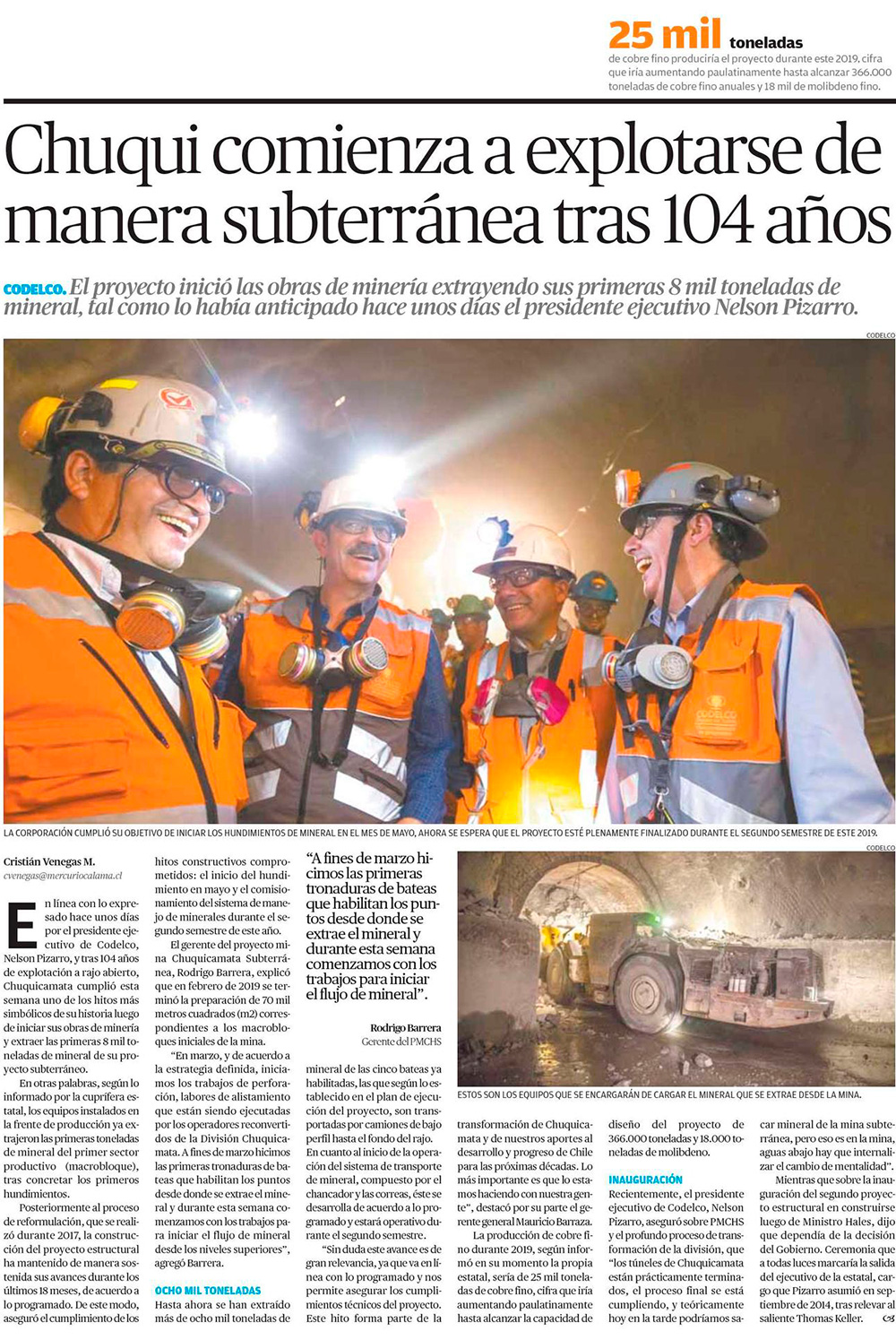 Codelco cumple un hito: Chuquicamata Subterránea inicia obras y extrae primeras toneladas de mineral - (emol)