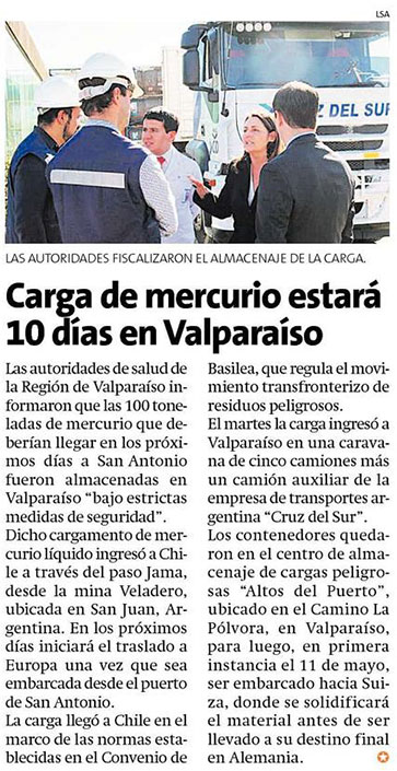 Camiones con 100 toneladas de mercurio estarán 10 días en Valparaíso - (elmartutino)