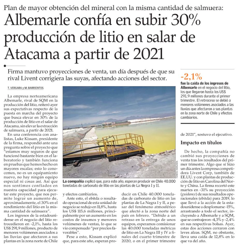 Albemarle dice que avanza en tecnología para mejorar producción de litio en Chile - (americaeconomia online)