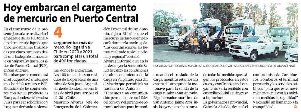 Gran cargamento de mercurio zarpó sin problemas desde San Antonio a Europa - (El Líder de San Antonio)