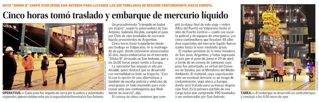 Gran cargamento de mercurio zarpó sin problemas desde San Antonio a Europa - (El Líder de San Antonio)