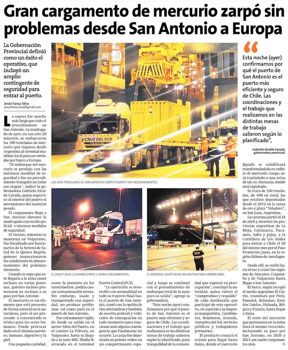 Hoy embarcan el cargamento de mercurio en Puerto Central - (El Líder de San Antonio)