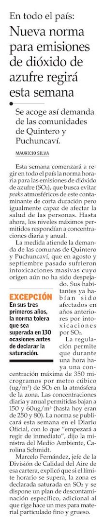 Quintero aprueba nueva norma ambiental - (La Tercera)