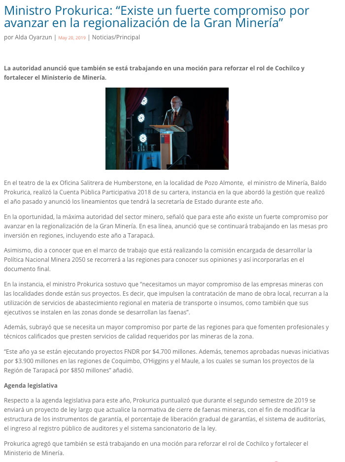 Cuenta pública del Ministerio de Minería enfatizó compromiso regional - (mch.cl)
