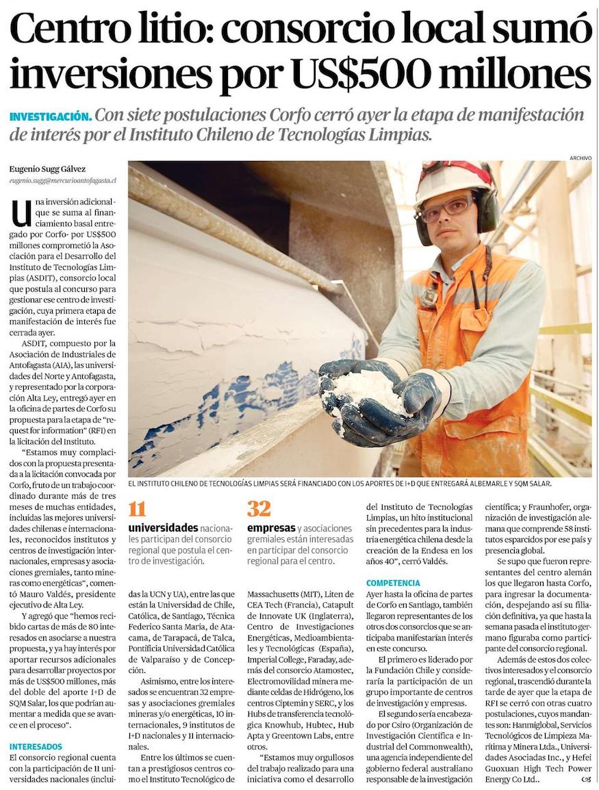 Interesados en instituto del litio: desde Volkswagen hasta centro aeroespacial - (El Mercurio de Antofagasta)