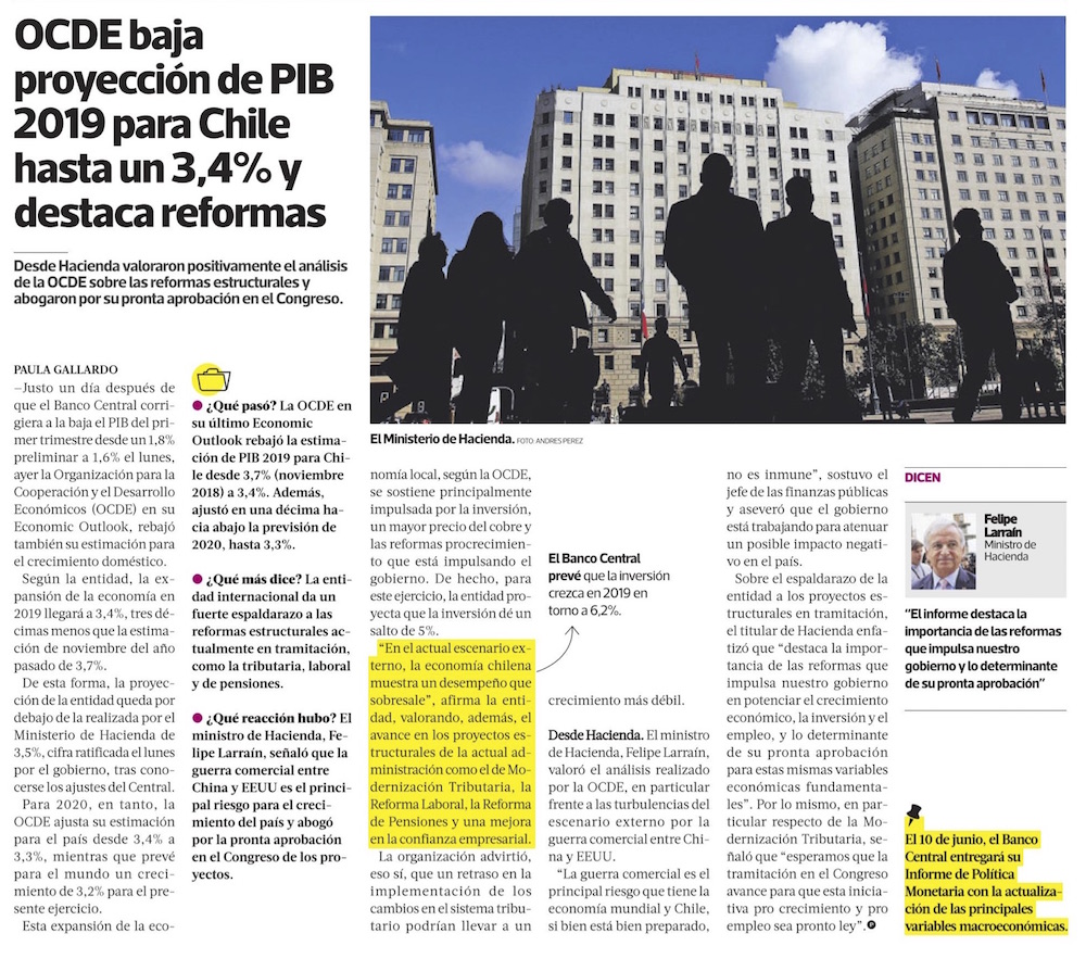 Tensiones comerciales llevan a la OCDE a rebajar proyección de crecimiento para Chile - (El Mercurio de Santiago)