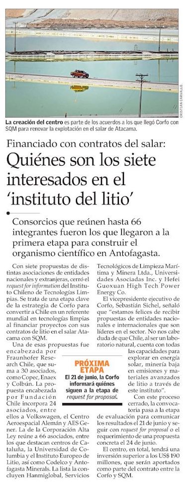 Interesados en instituto del litio: desde Volkswagen hasta centro aeroespacial - (El Mercurio de Antofagasta)