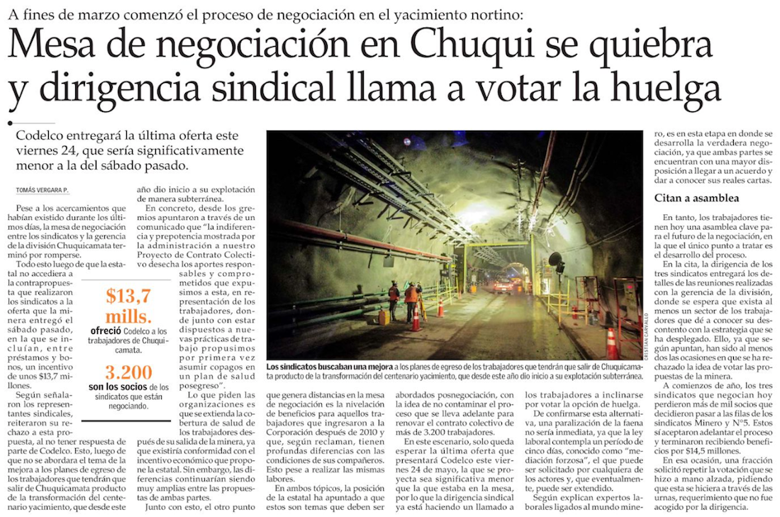 Plazo de una pronta firma vence y sindicatos convocan a asamblea general para esta tarde - (El Mercurio de Calama)