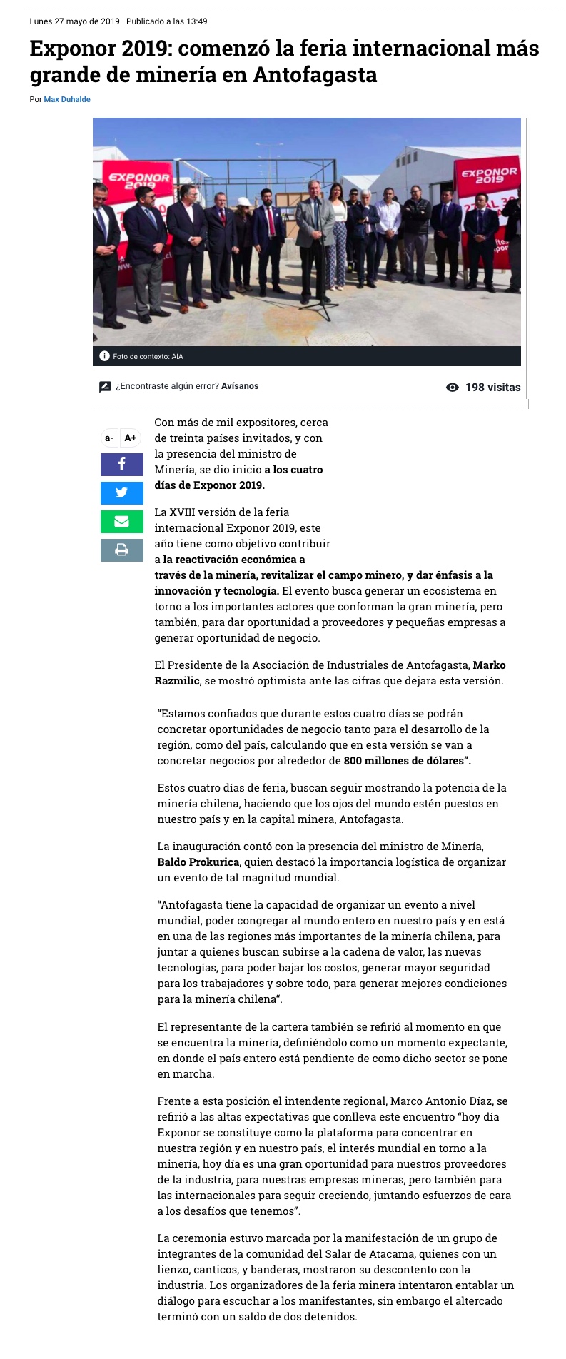 Exponor 2019 se inaugura con foco en proyectos y llamado a fomentar el empleo local - (mch.cl)