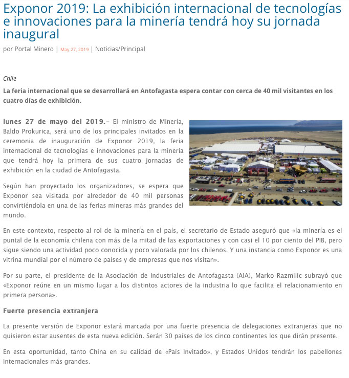 Exponor 2019 se inaugura con foco en proyectos y llamado a fomentar el empleo local - (mch.cl)