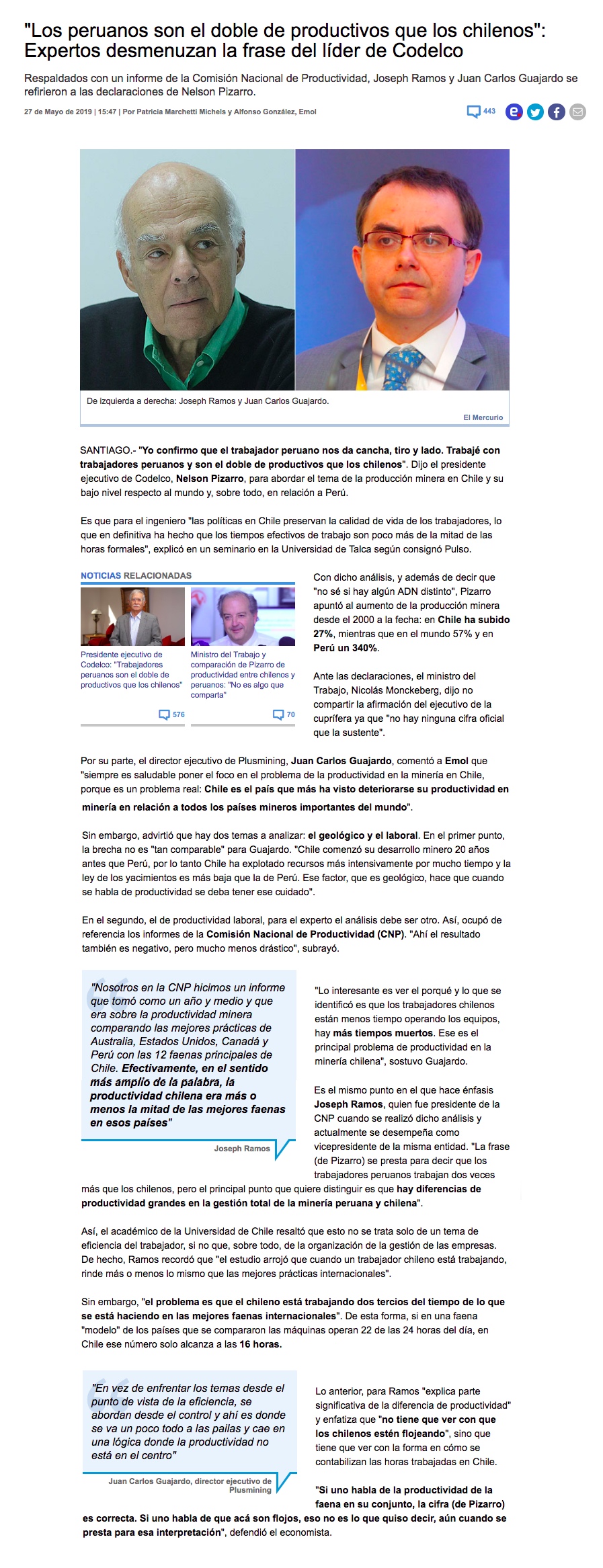 Jefe de minera chilena Codelco critica incertidumbre jurídica ambiental y baja productividad - (americaeconomia online)