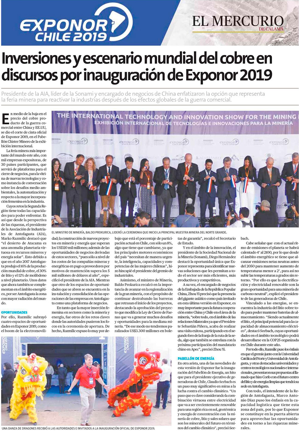 Exponor 2019 se inaugura con foco en proyectos y llamado a fomentar el empleo local - (mch.cl)