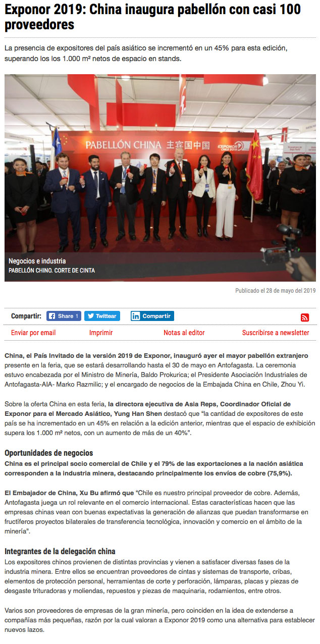 Exponor 2019: el gigante asiático como principal socio comercial de Chile - (biobiochile online)