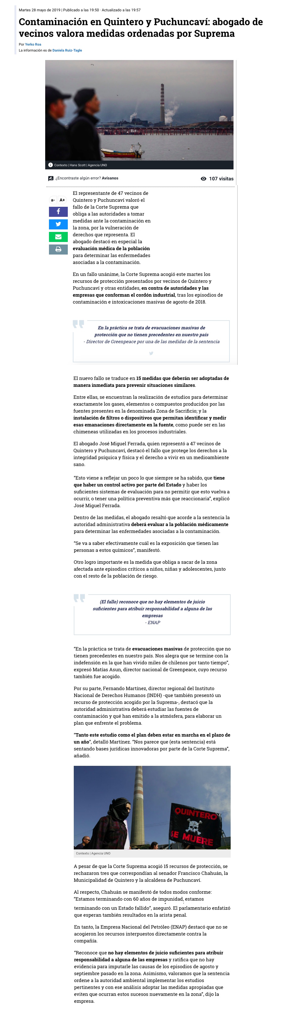 Suprema ordena la mesa de la contaminación en Quintero-Puchuncaví e imputa toda la responsabilidad al Estado - (El Mostrador)