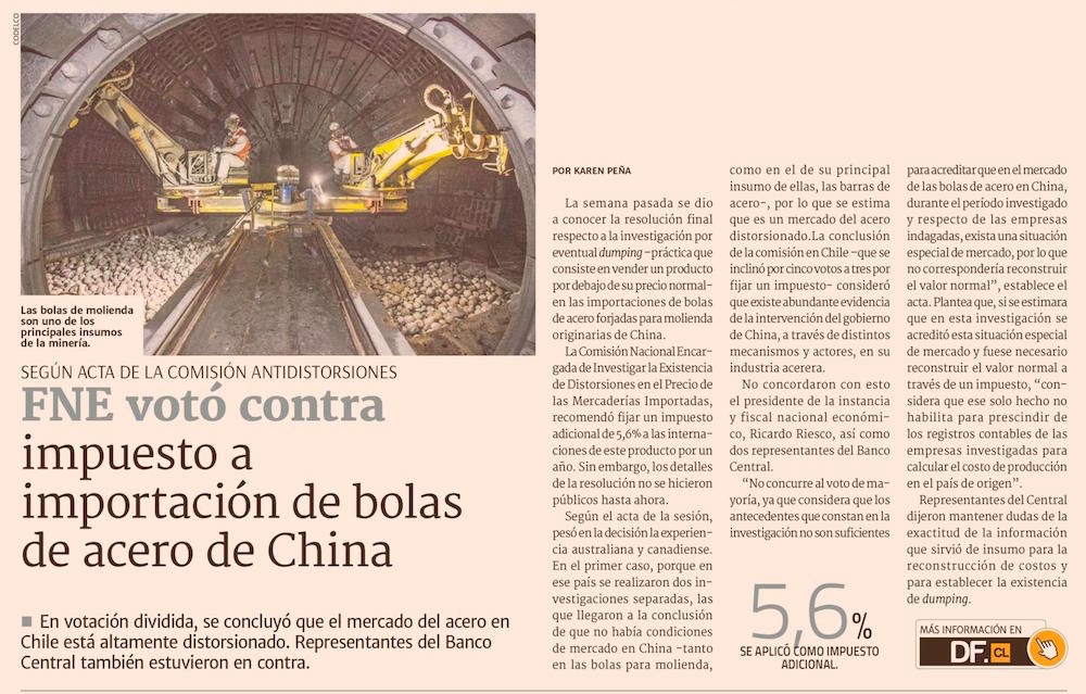 FNE y BC rechazaron sobretasa en caso de bolas de acero - (El Mercurio de Santiago)
