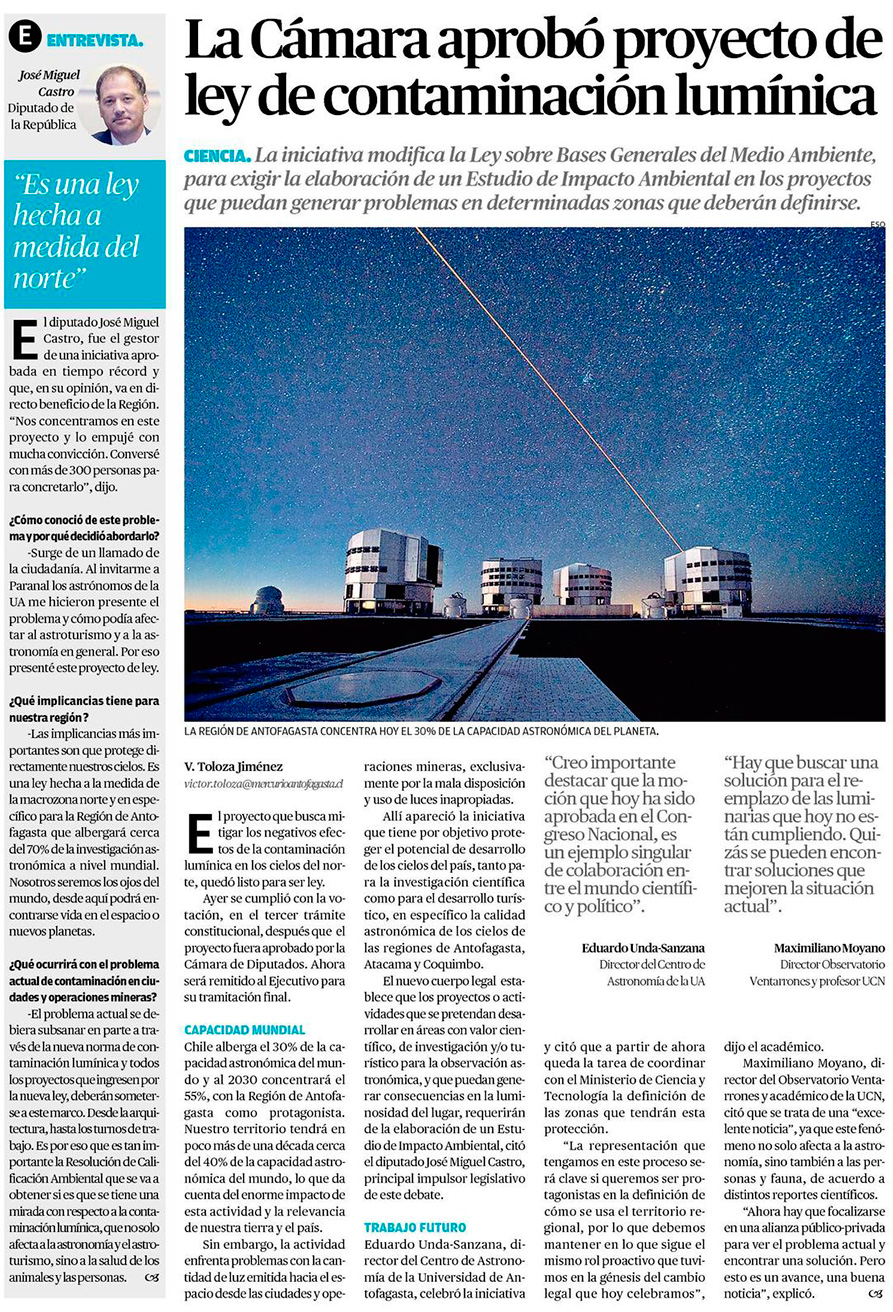 Modifican ley para proteger los cielos de la contaminación lumínica - (El Mercurio de Santiago)