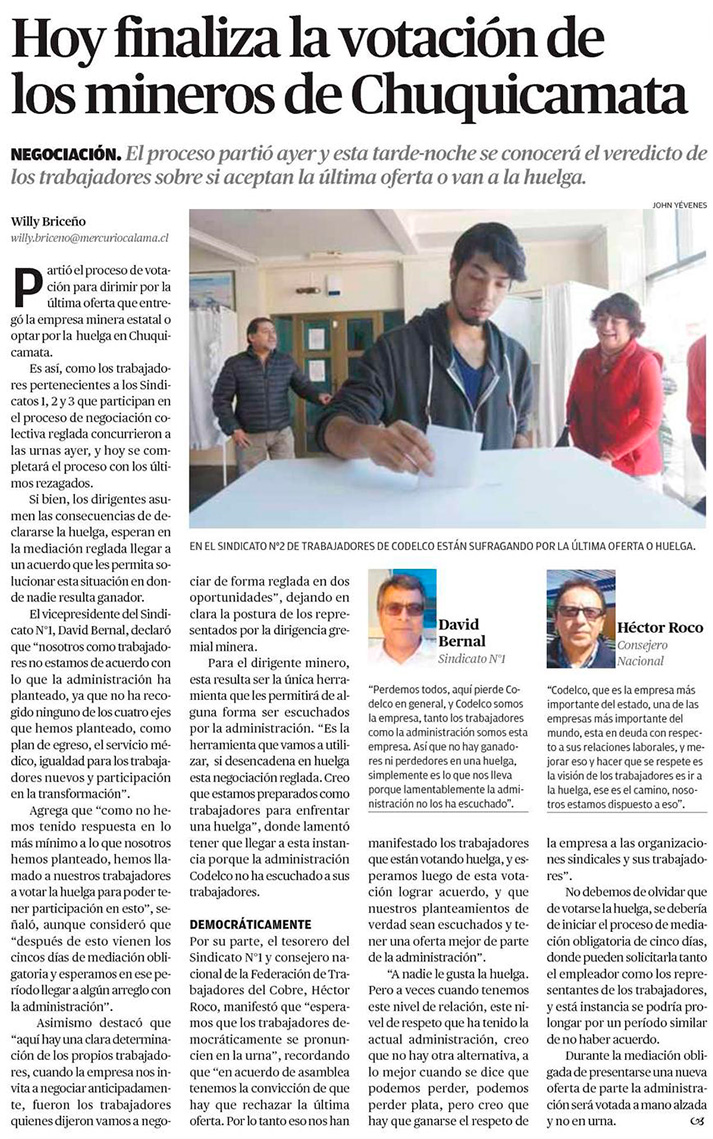 Sindicatos de Chuquicamata votan última oferta y dirigentes apuntan a huelga - (Pulso)