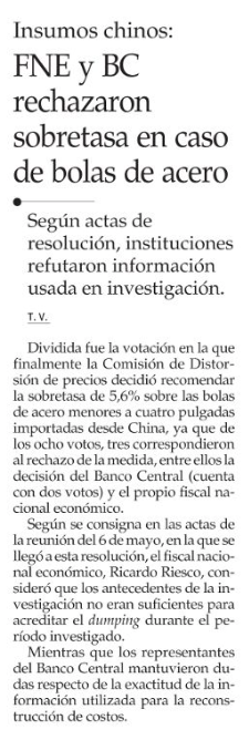 FNE votó contra impuesto a importación de bolas de acero de China - (Diario Financiero)