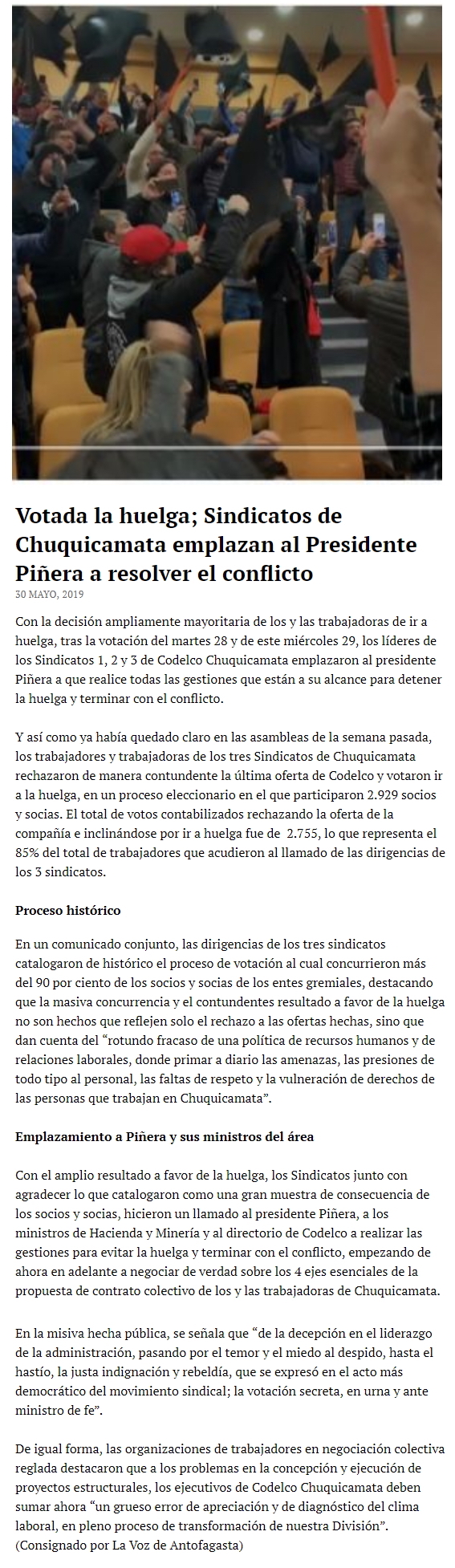 Codelco y trabajadores inician hoy el proceso de mediación obligatoria - (El Mercurio de Calama)