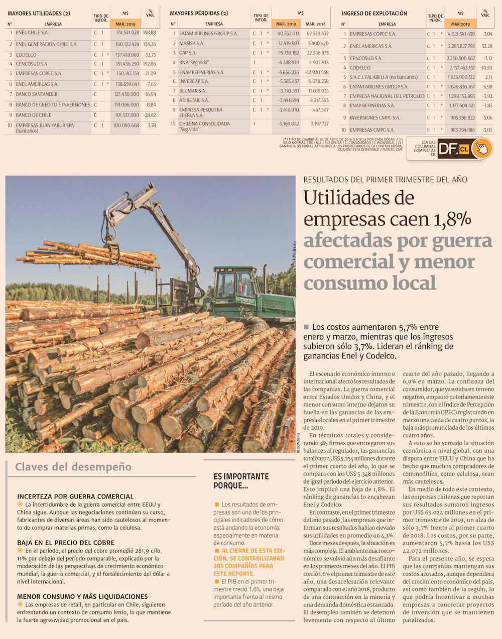 Utilidades de empresas retroceden 1,2% en primer trimestre del año - (El Mercurio de Santiago)