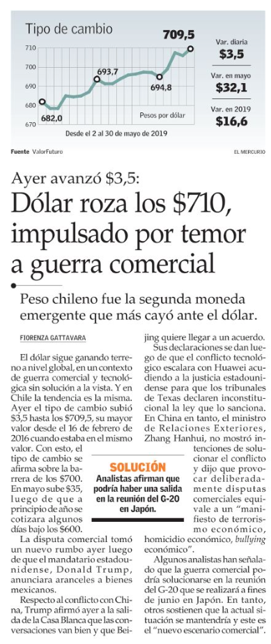 El peso chileno es la moneda que más se depreció en el mundo durante mayo - (Pulso)