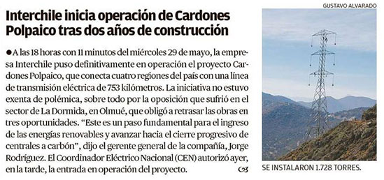 ISA Interchile puso en operación línea de transmisión Cardones- Polpaico - (El Diario de Atacama)