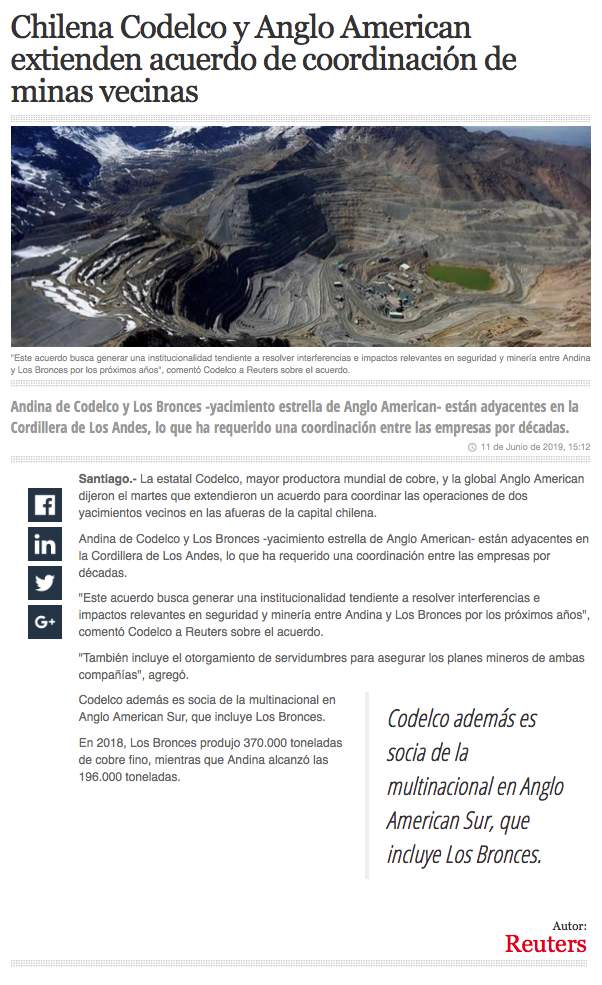 Codelco y Anglo American alcanzan acuerdo por Andina y Los Bronces - (Pulso)