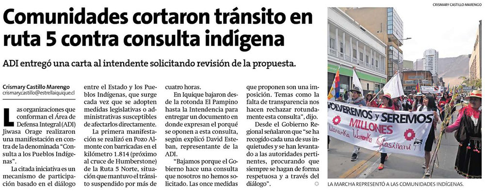 Multitudinaria marcha de comunidades en rechazo a la consulta indígena del Gobierno - (El Longino de Iquique)