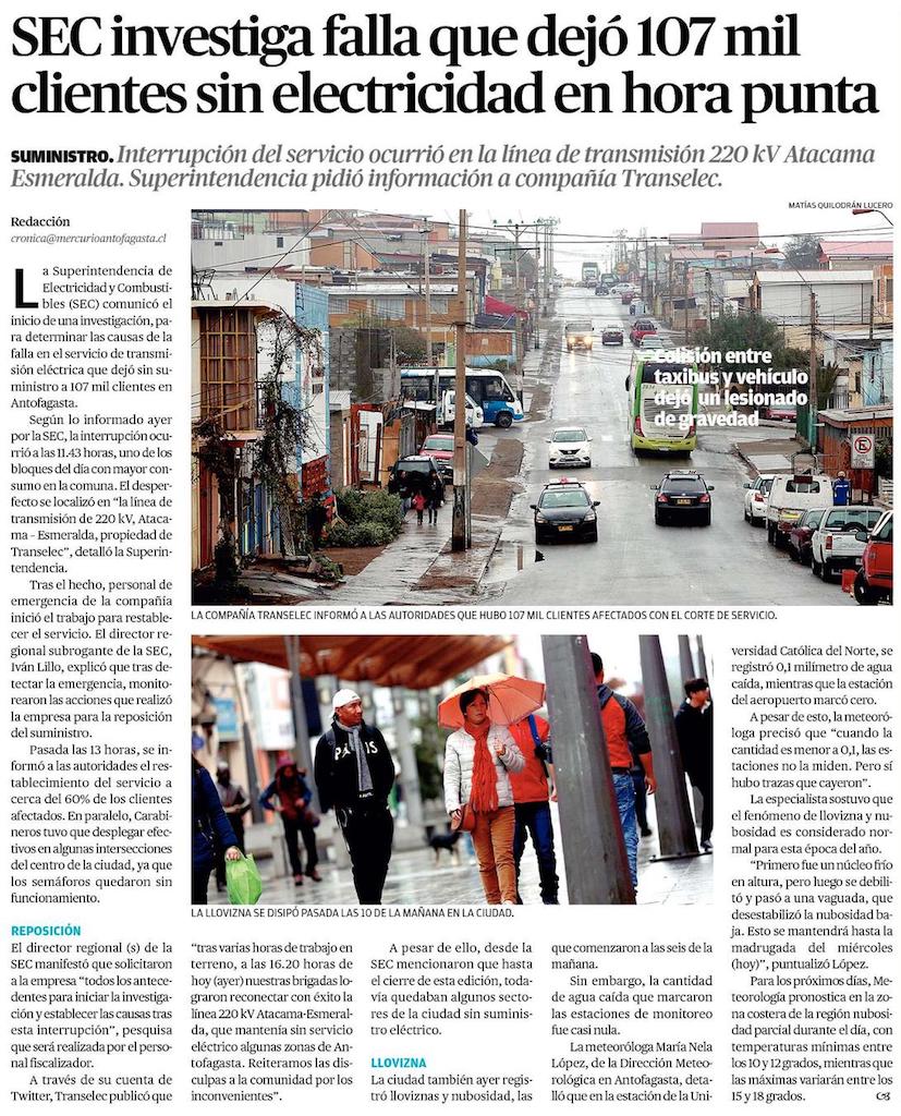 Investigan corte de luz que afectó 107 mil hogares en Antofagasta - (cooperativa online)