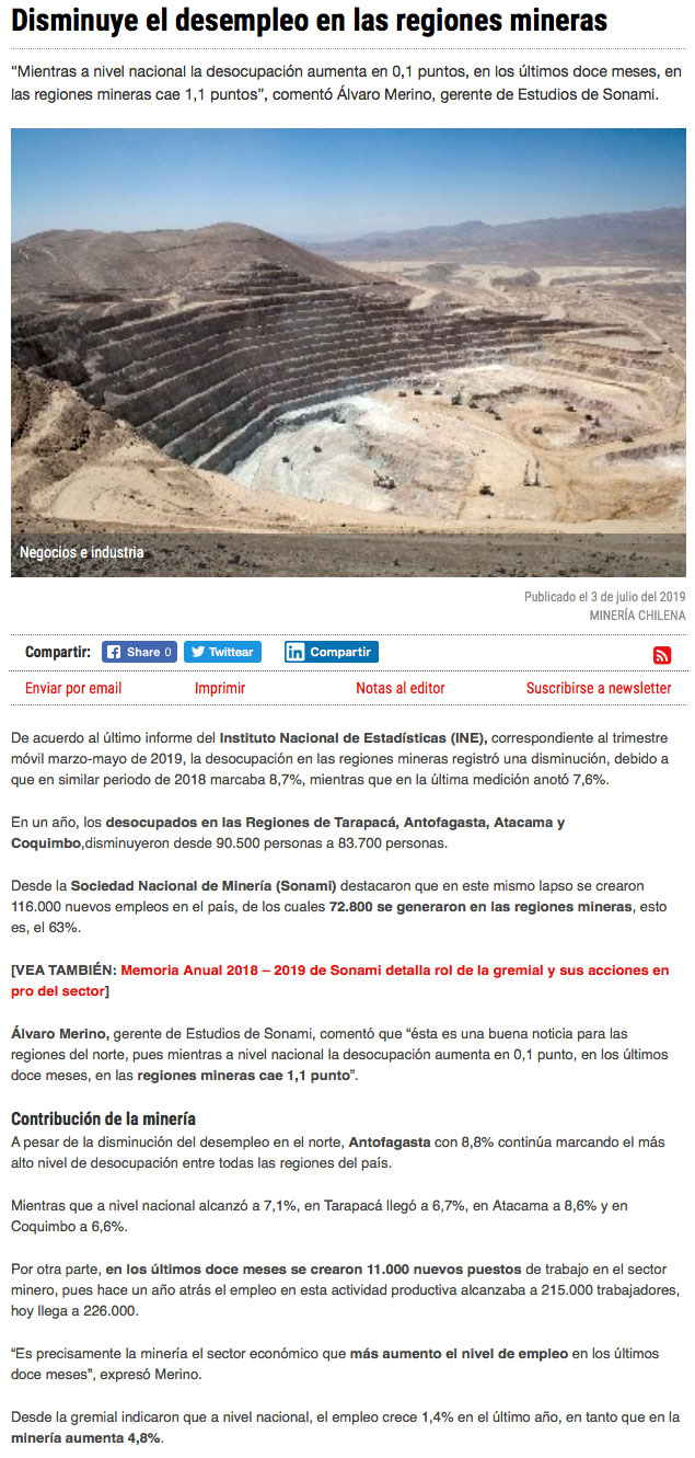 Sonami: regiones mineras bajan desocupados, pero Antofagasta y Atacama siguen con ‘cifras rojas’ - (norteminero online)