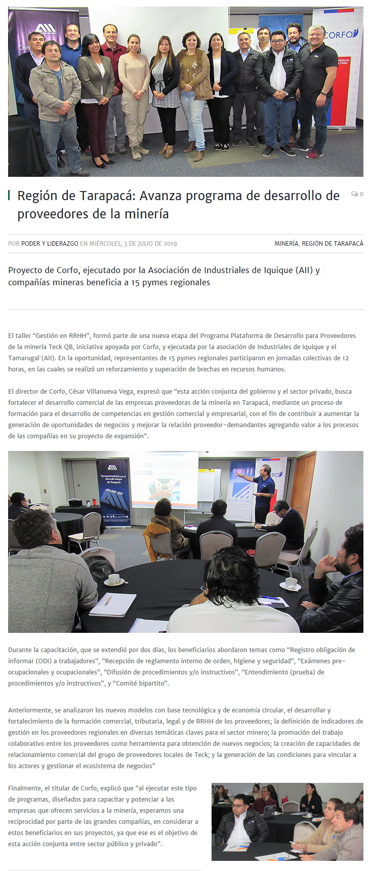 Proveedores de la Minería: Avanza programa de desarrollo CORFO - (elreporterodeiquique)