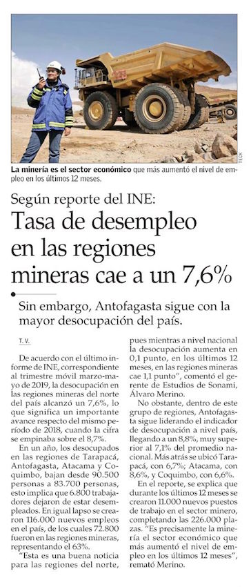 Sonami: regiones mineras bajan desocupados, pero Antofagasta y Atacama siguen con ‘cifras rojas’ - (norteminero online)