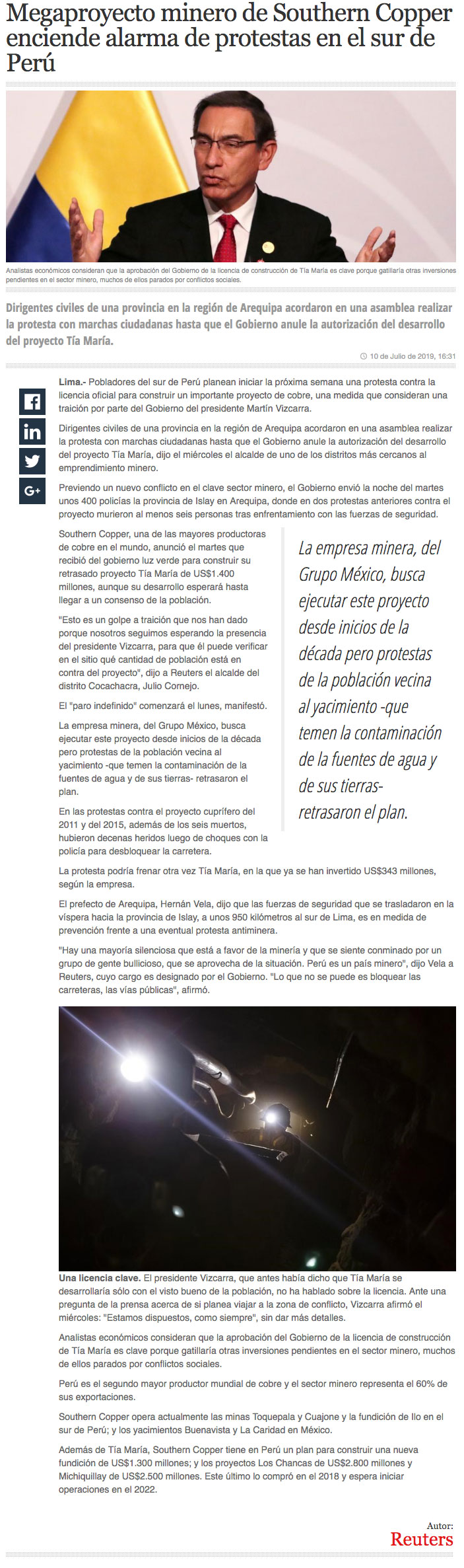 Licencia a 'Tía María': residentes de Valle de Tambo anuncian paro indefinido desde el 15 de julio - (Gestión Online (Perú))