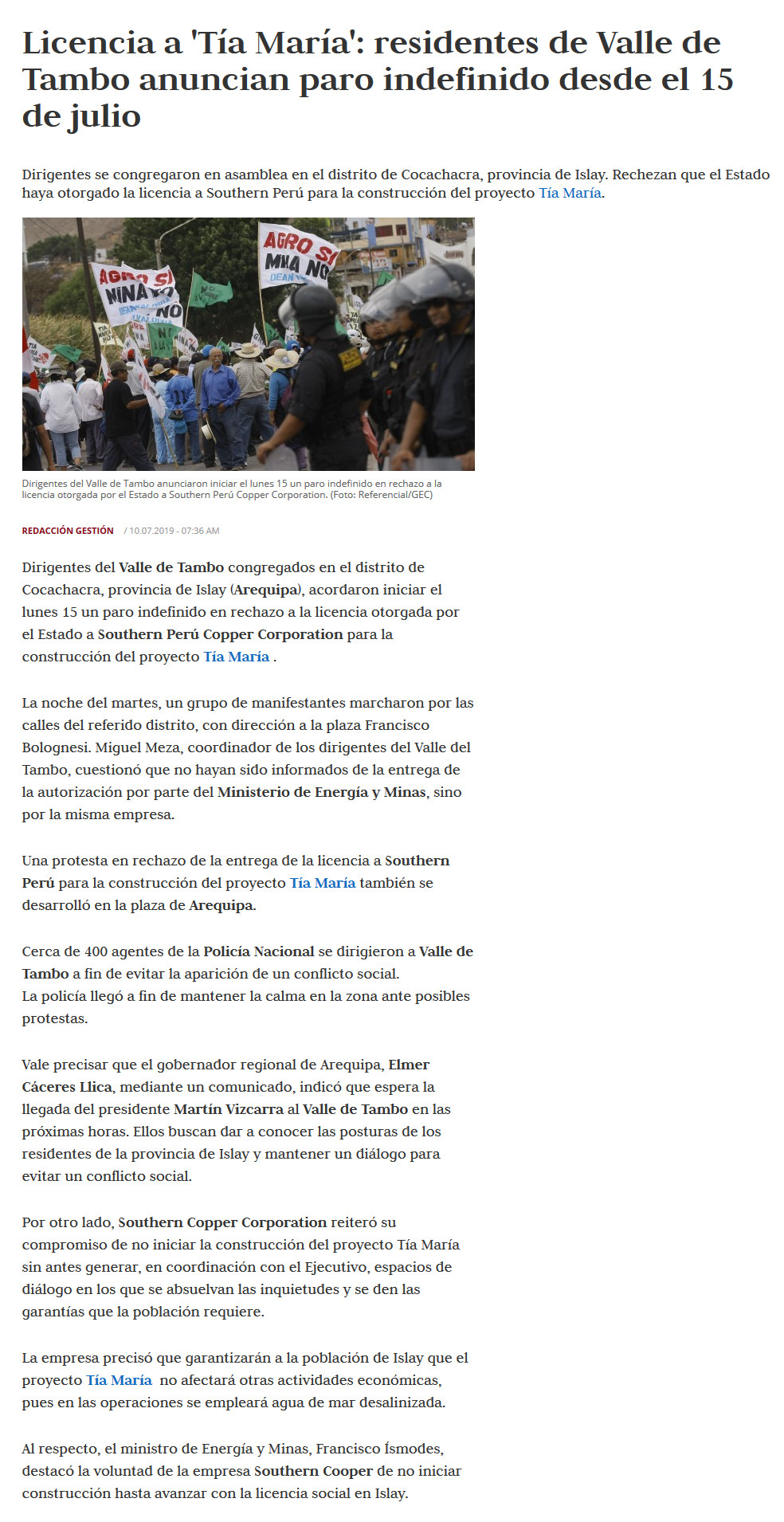 Megaproyecto minero de Southern Copper enciende alarma de protestas en el sur de Perú - (americaeconomia online)