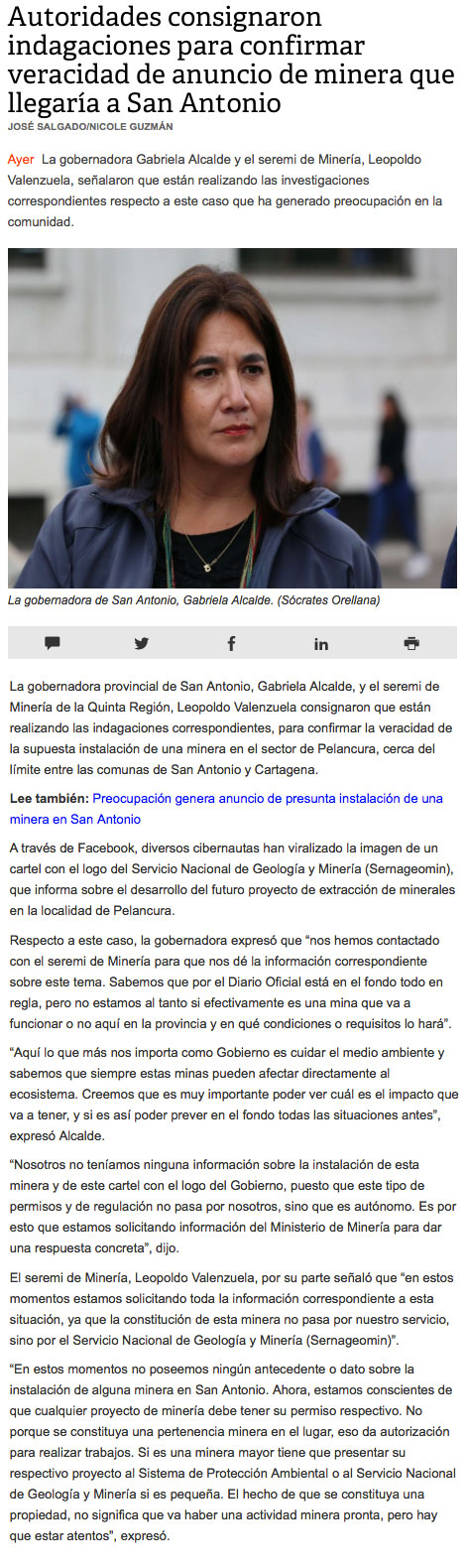 Preocupación genera supuesta llegada de minera a Pelancura - (El Líder de San Antonio)