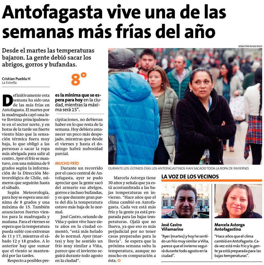 La Provincia El Loa enfrentará los días más fríos de este 2019 - (El Mercurio de Calama)