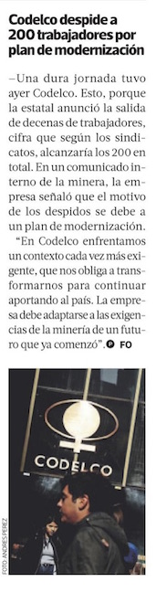 Codelco despide a 114 supervisores del Distrito Norte y en su gran mayoría de Gabriela Mistral - (El Mercurio de Calama)