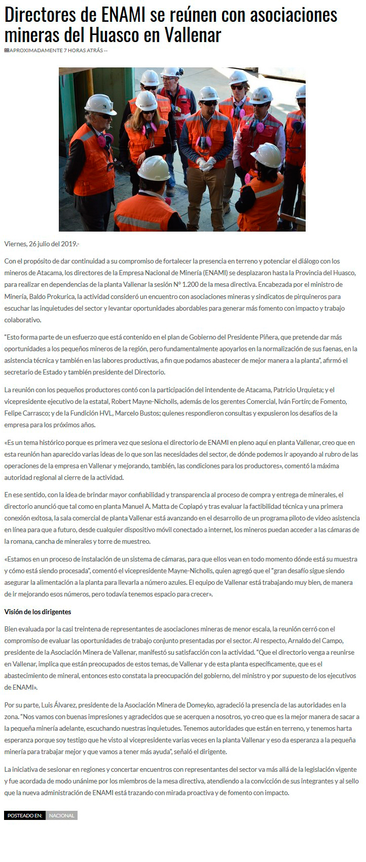 Directores de ENAMI se reunieron con asociaciones mineras del Huasco - (reporteminero)