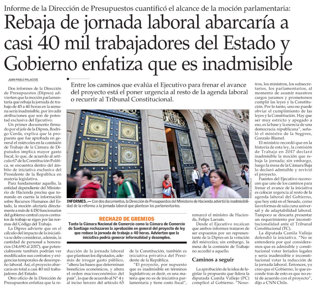 Las duras observaciones de Trabajo al proyecto que rebaja la jornada laboral - (Diario Financiero)