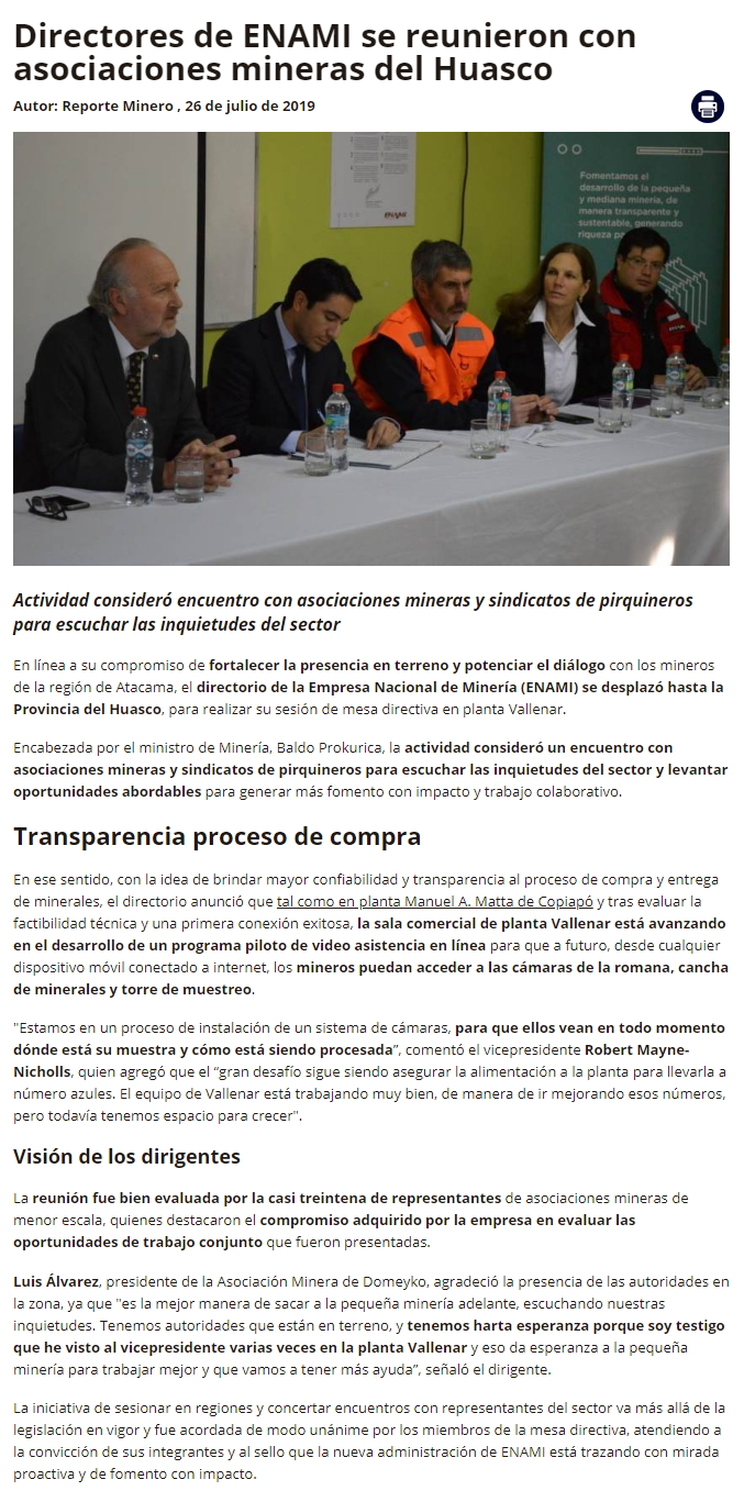 Directores de ENAMI se reúnen con asociaciones mineras del Huasco en Vallenar - (elamerica)