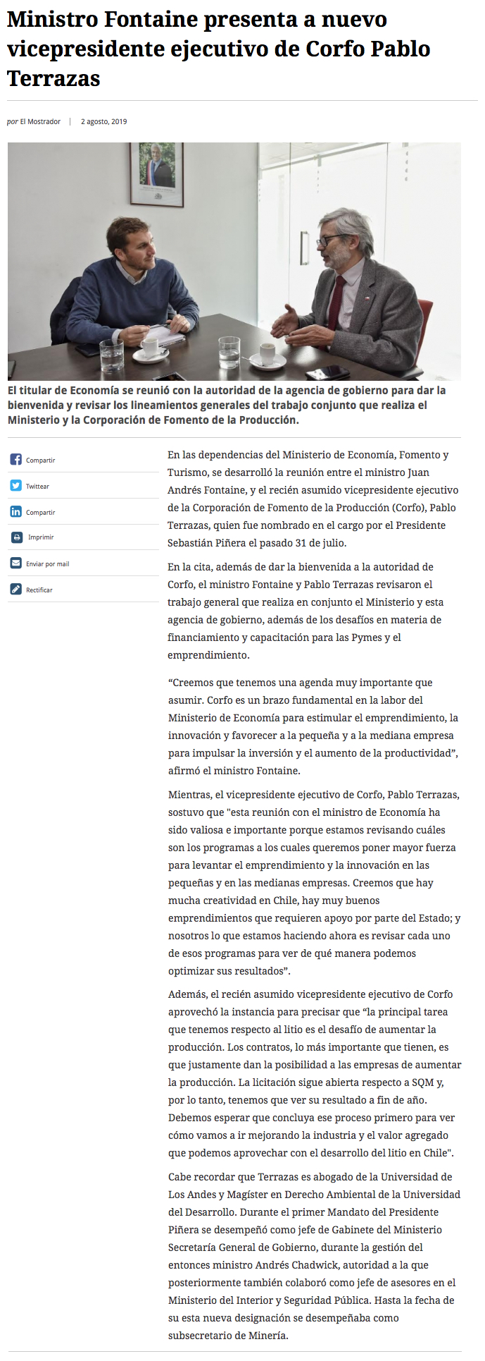 Pablo Terrazas (Corfo): La principal tarea que tenemos respecto al litio es aumentar la producción - (mch.cl)