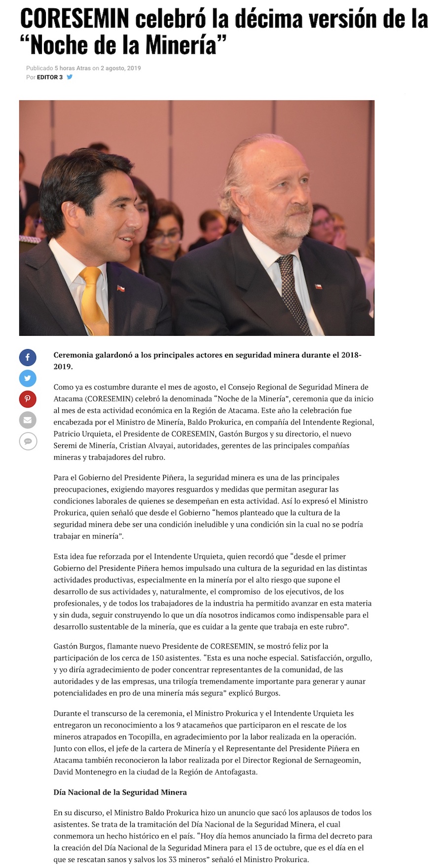 Coresemin celebró la décima versión de la “Noche de la Minería” - (El Diario de Atacama)