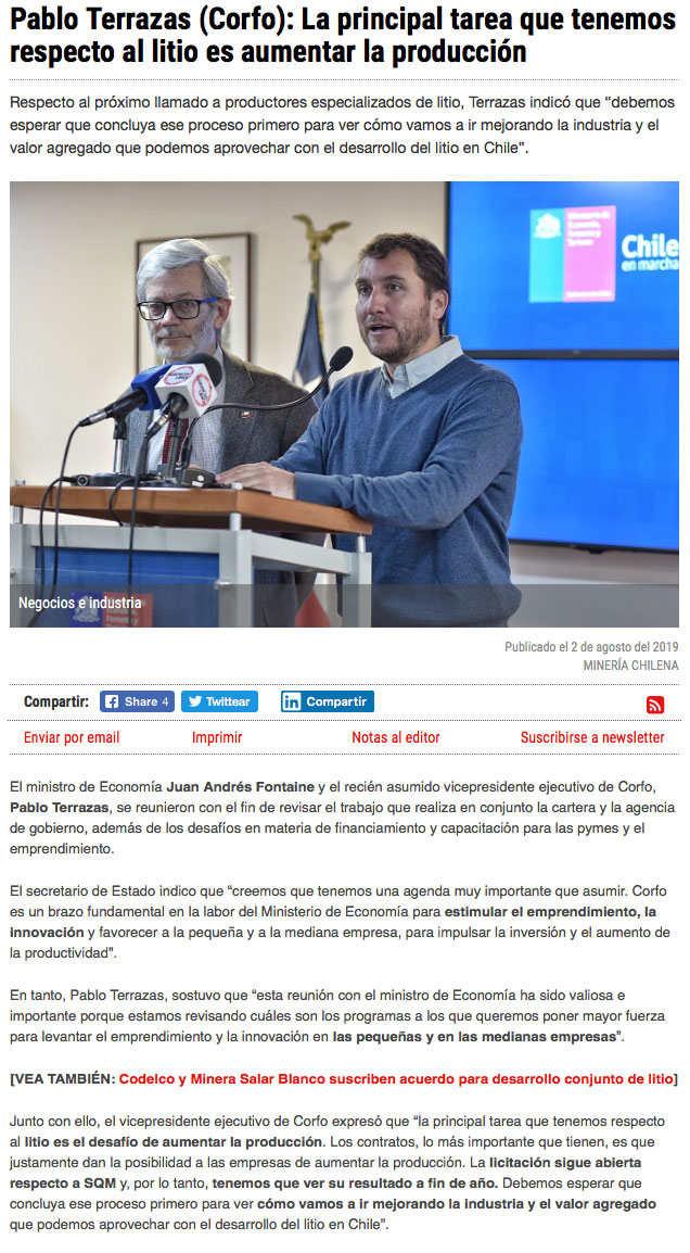 Ministro Fontaine presenta a nuevo vicepresidente ejecutivo de Corfo Pablo Terrazas - (El Mostrador)