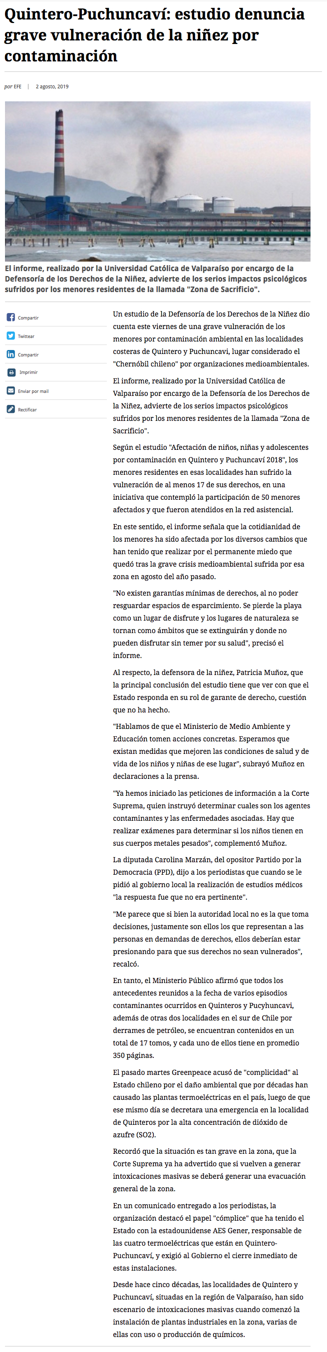 Al menos 17 derechos de los niños se violan en Quintero - (El Mercurio de Valparaíso)