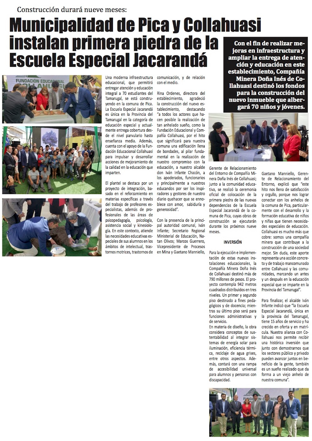 Instalan primera piedra de nuevo edificio de escuela especial de Pica - (Estrella de Iquique)