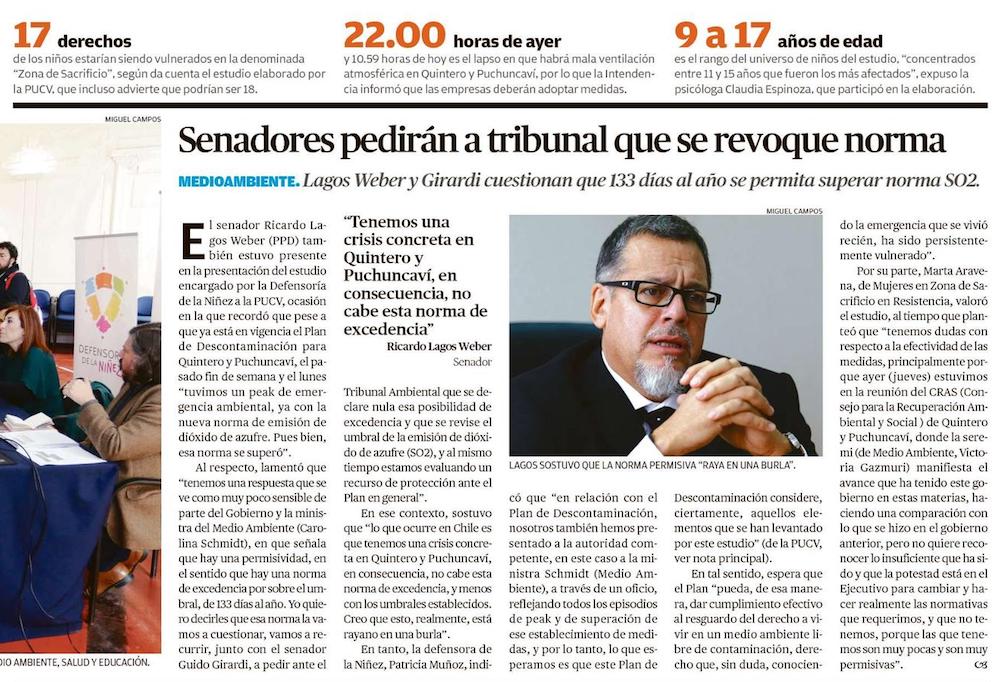 Defensora de la Niñez exige aplicar exámenes de metales pesados a menores de Puchuncaví - (El Mercurio de Santiago)