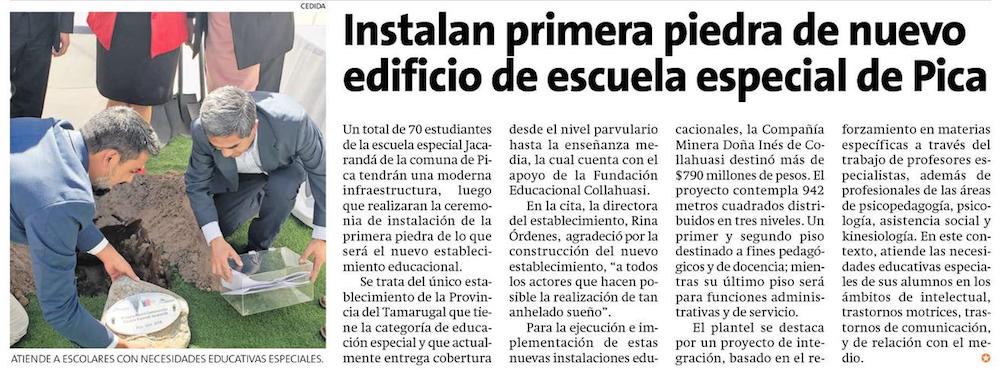 Municipalidad de Pica y Collahuasi instalan primera piedra de la Escuela Especial Jacarandá - (El Longino de Iquique)