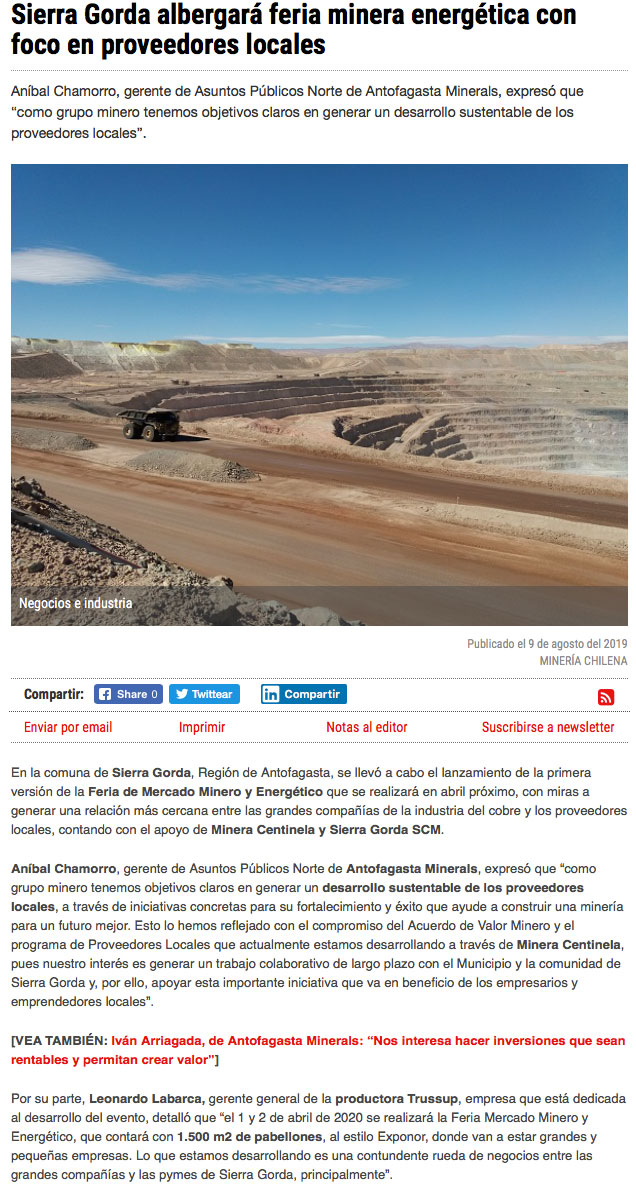 En Sierra Gorda realizarán primera versión de Feria de Mercado Minero y Energético - (norteminero online)